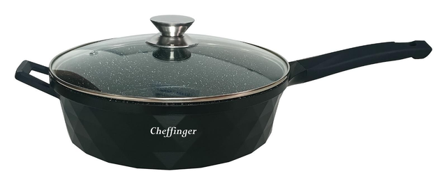 Poêle avec couvercle revêtement pierre couvercle en verre 28cm